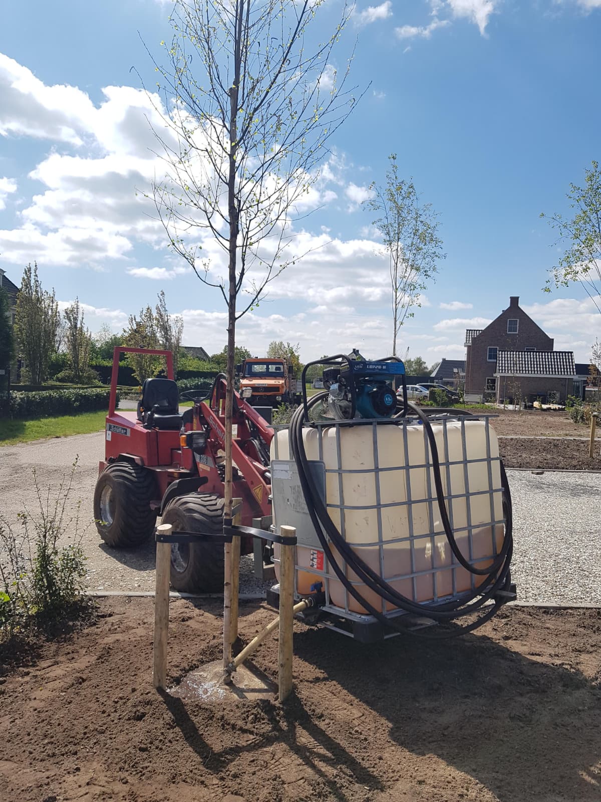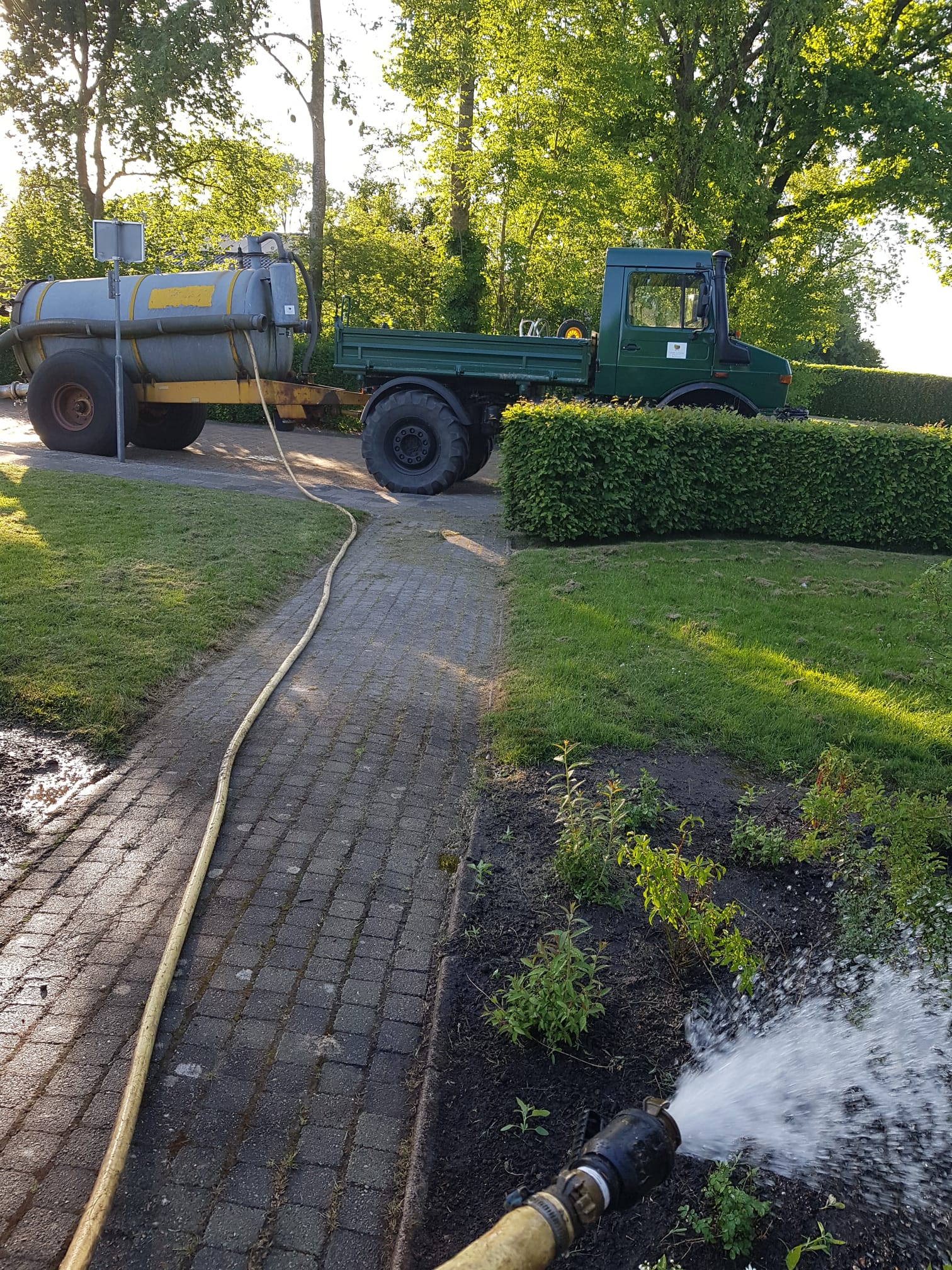 Na de aanplant van plantsoen is het belangrijk om deze in droge periode regelmatig te bewateren. We beschikken over divers materiaal wat geschikt is voor kleine en grote ruimtes.