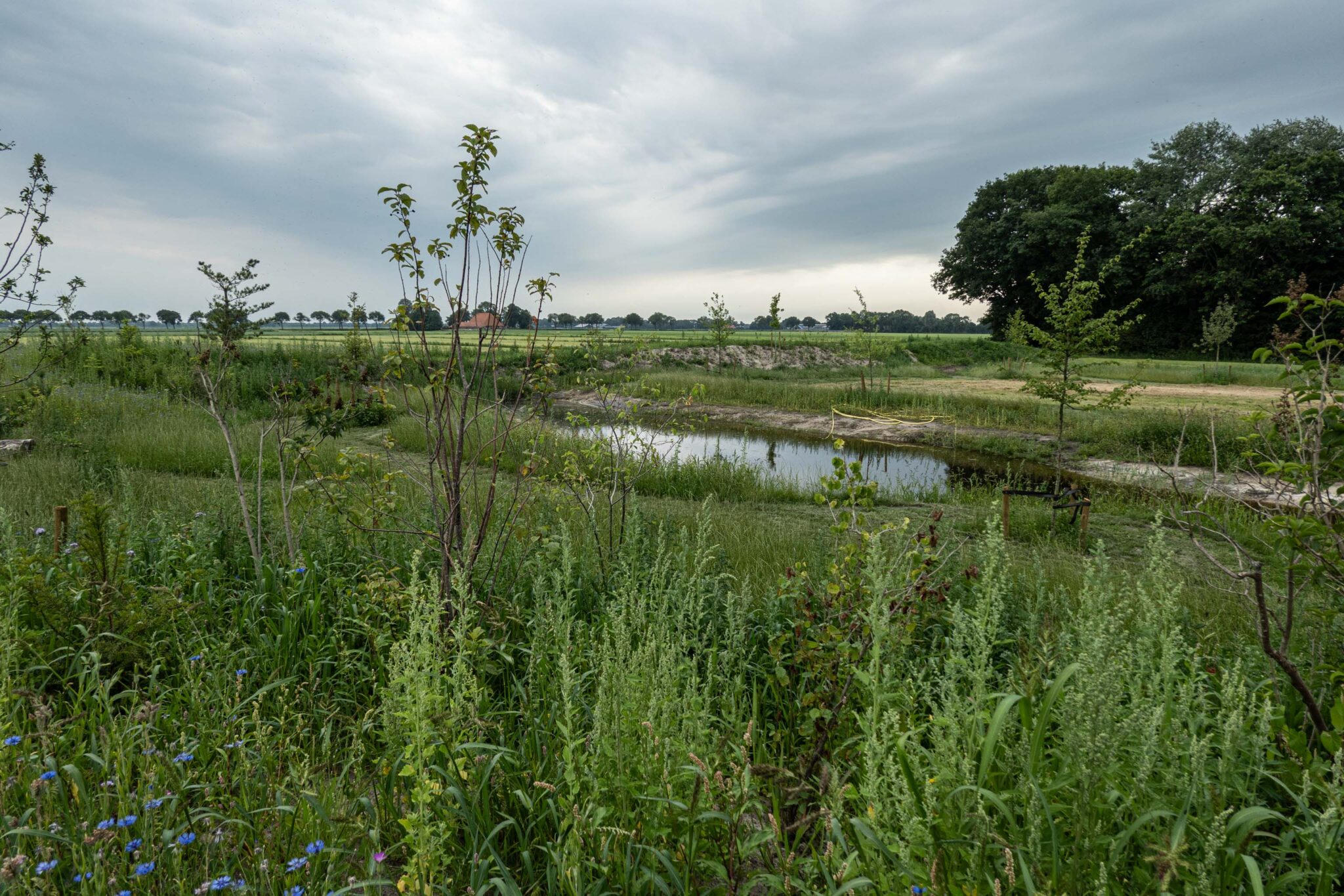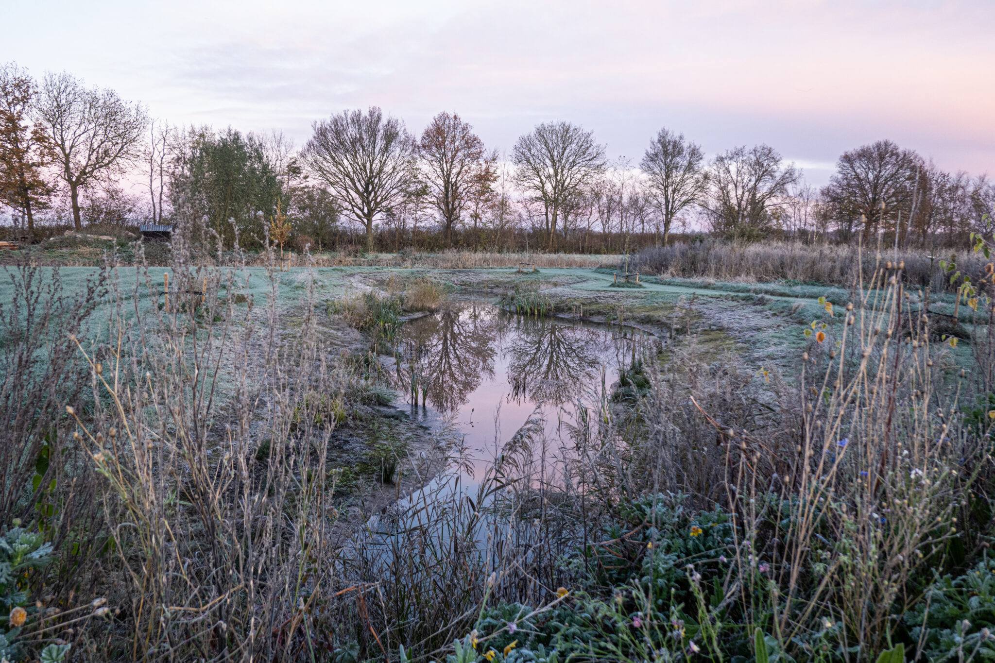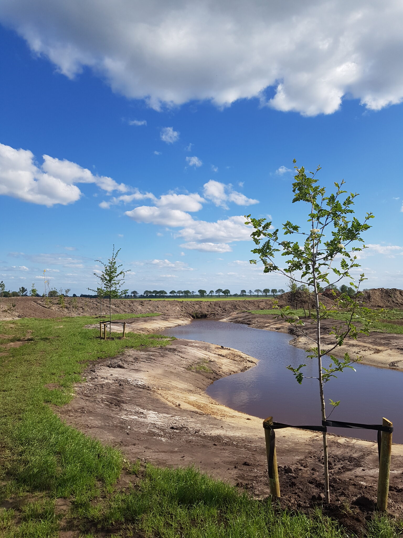 Voor deze natuurtuin hebben we 2 kikkerpoelen uitgegraven, de vrijgekomen grond is gebruikt voor een grondwal rondom. Diverse bomen en struiken zijn rond de poelen en op de grondwal geplant. Meerdere stukken zijn ingezaaid met een meerjarig bloemenmengsel. Leuke feitje is dat de kikkers en (water)vogels zich na enkele dagen al thuis voelde in de net aangelegde poelen.