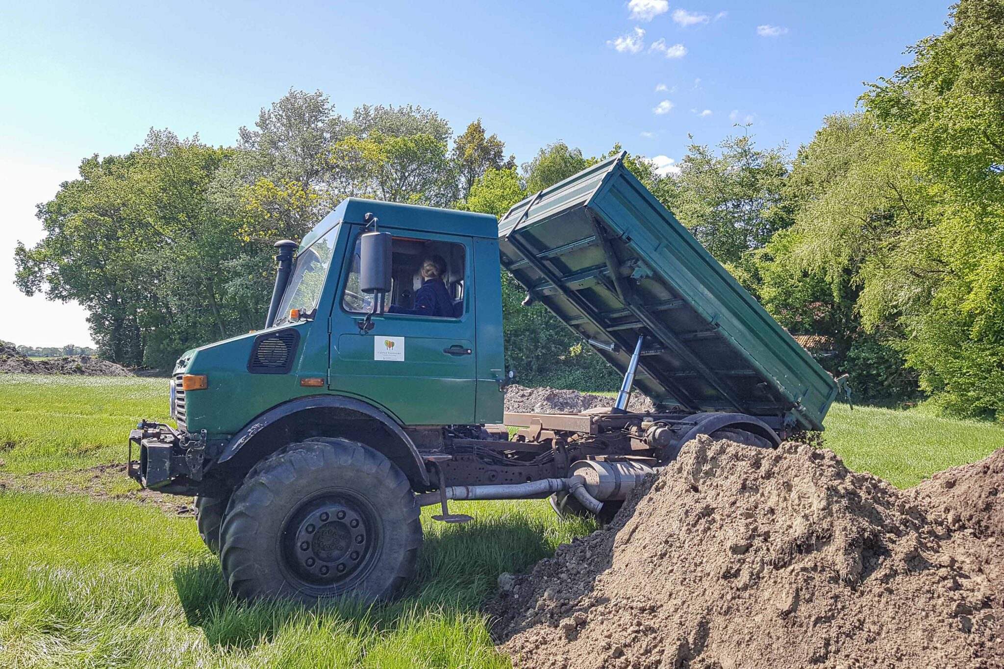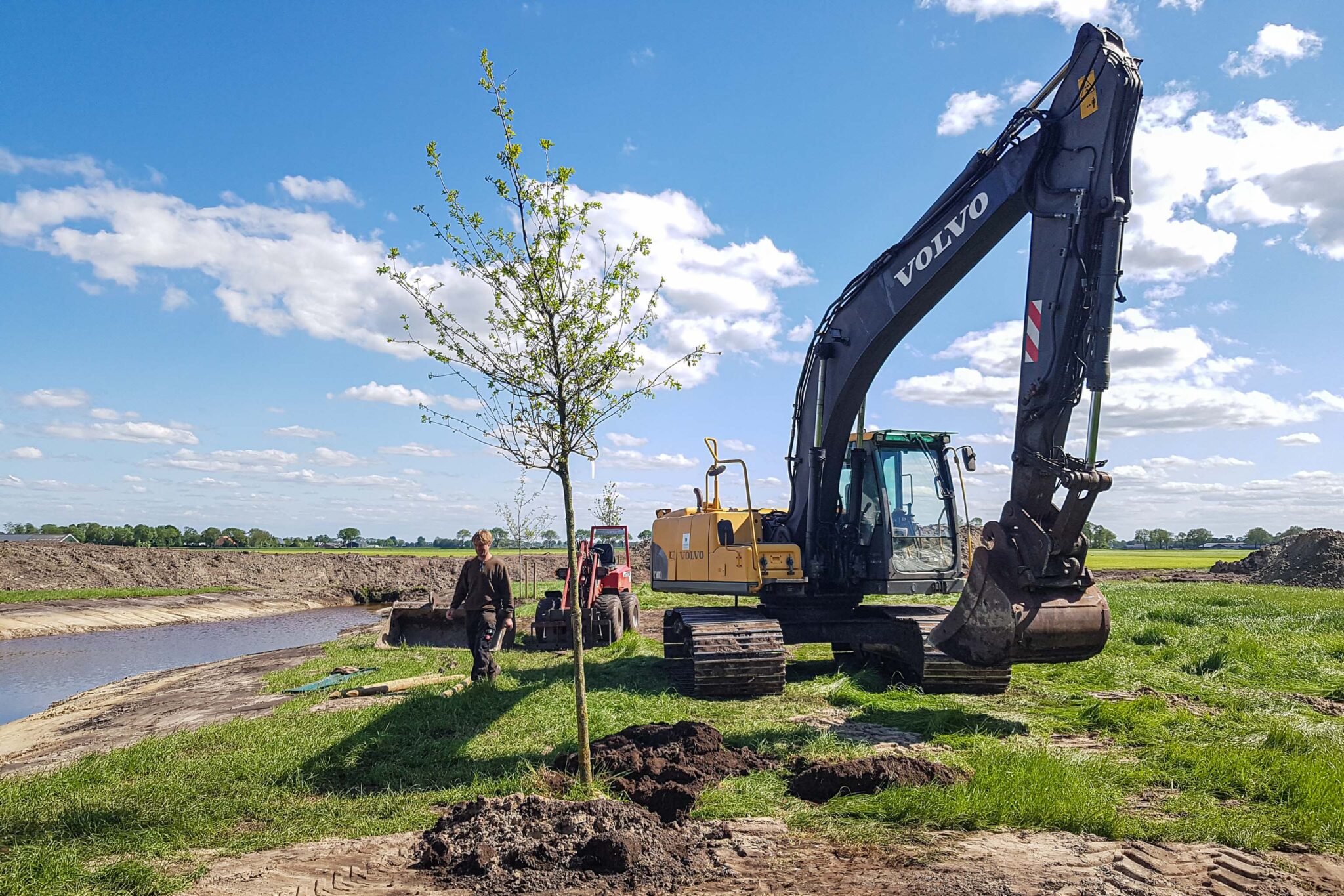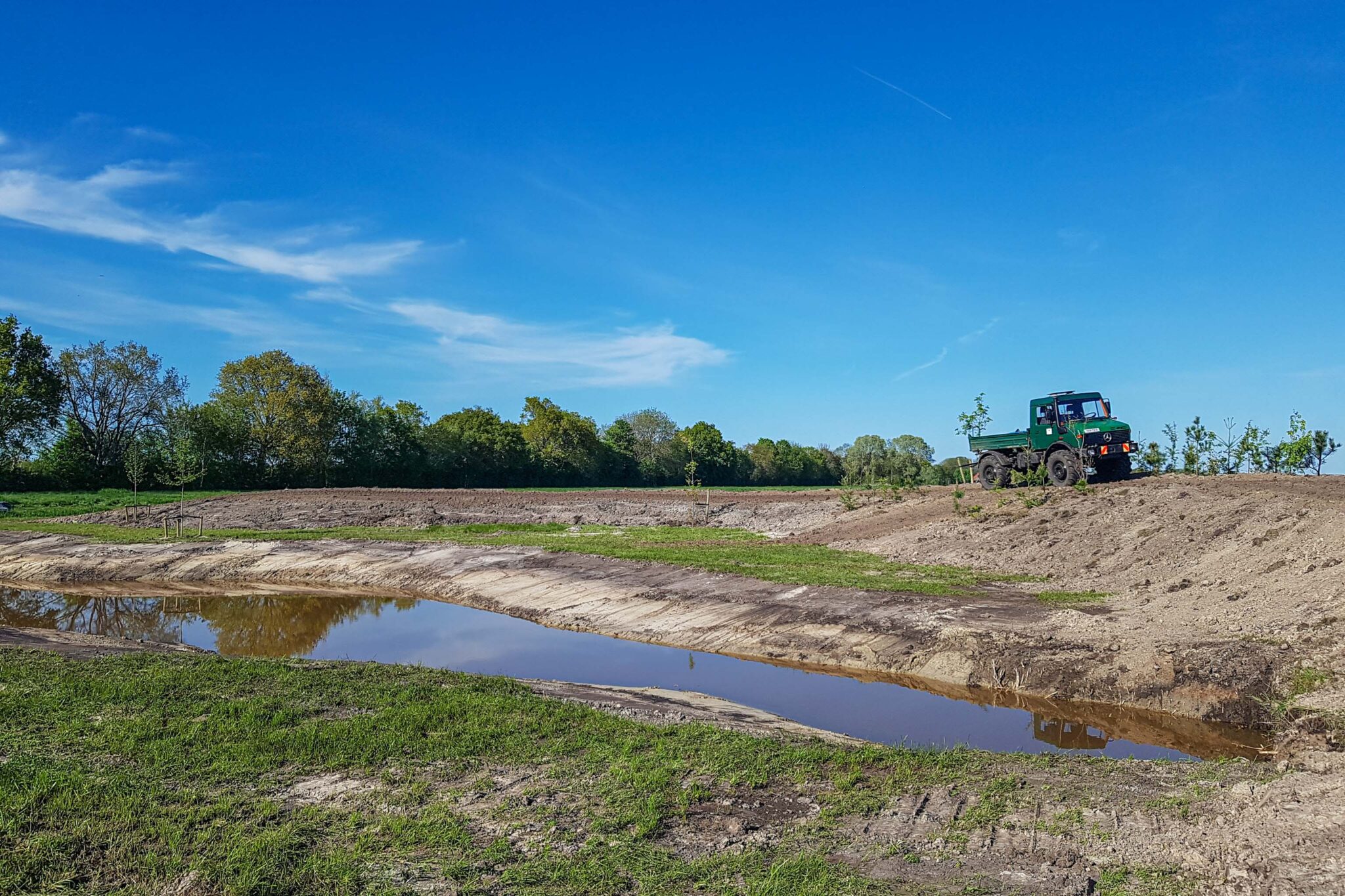 Voor deze natuurtuin hebben we 2 kikkerpoelen uitgegraven, de vrijgekomen grond is gebruikt voor een grondwal rondom. Diverse bomen en struiken zijn rond de poelen en op de grondwal geplant. Meerdere stukken zijn ingezaaid met een meerjarig bloemenmengsel. Leuke feitje is dat de kikkers en (water)vogels zich na enkele dagen al thuis voelde in de net aangelegde poelen.