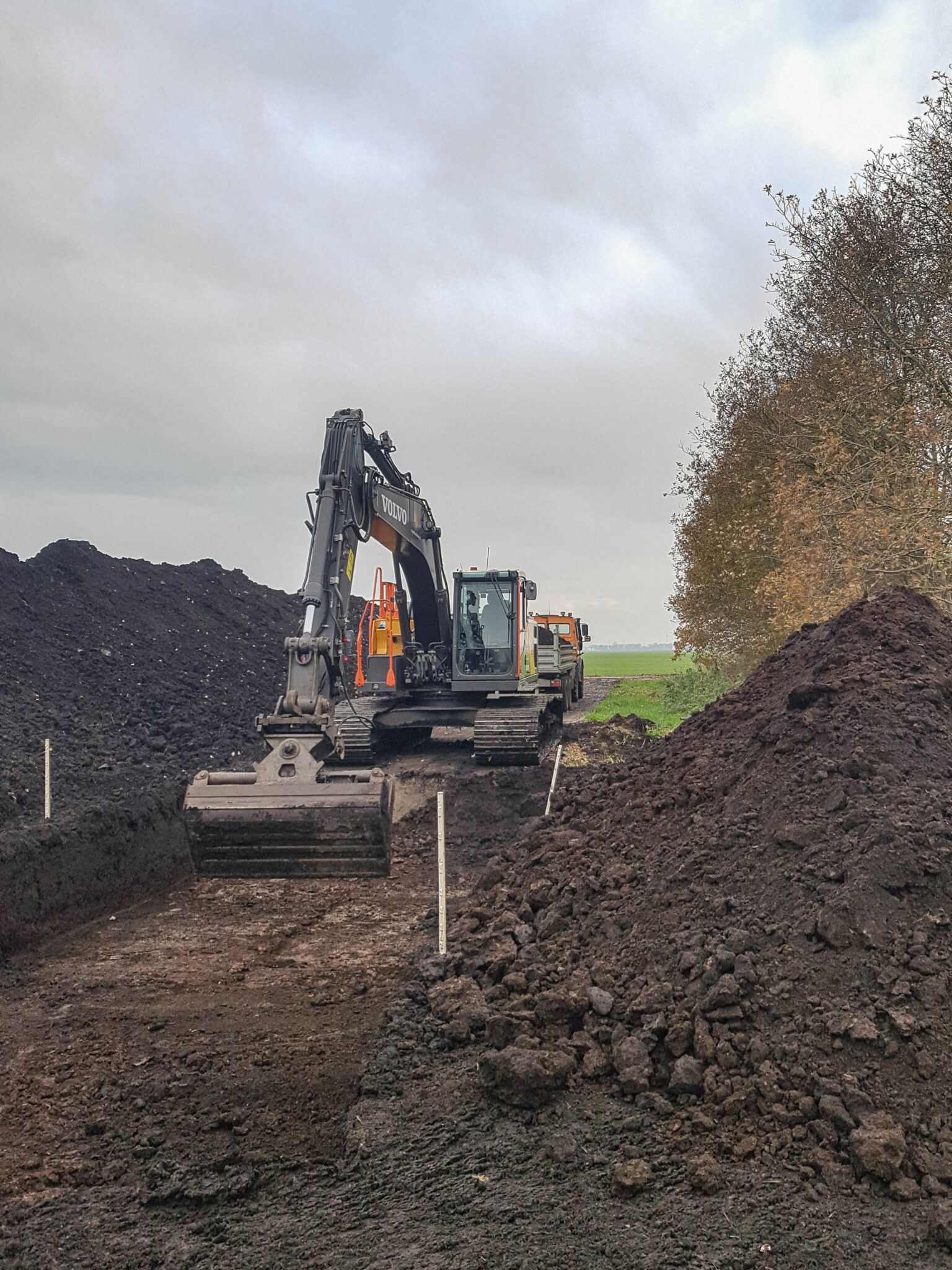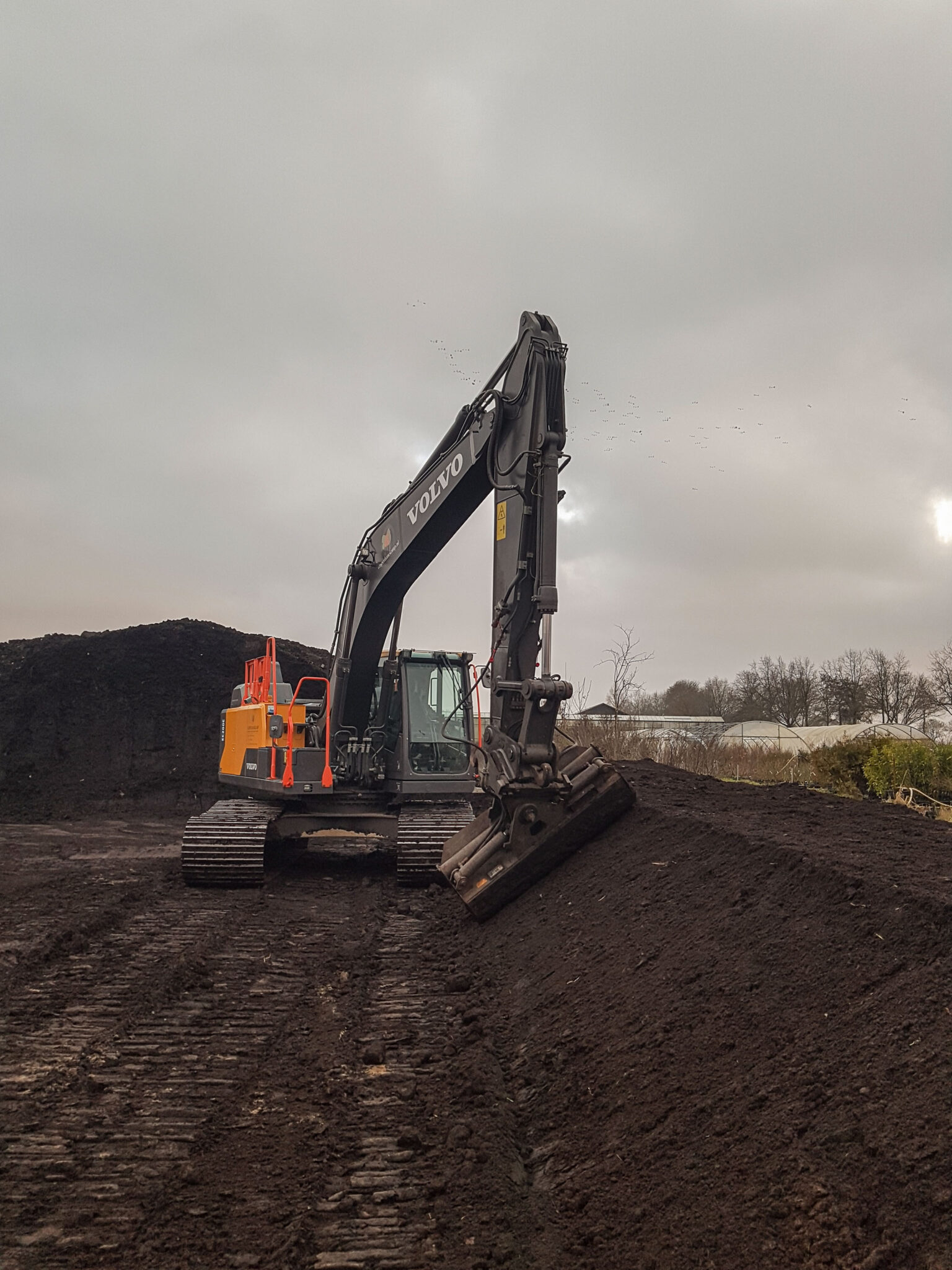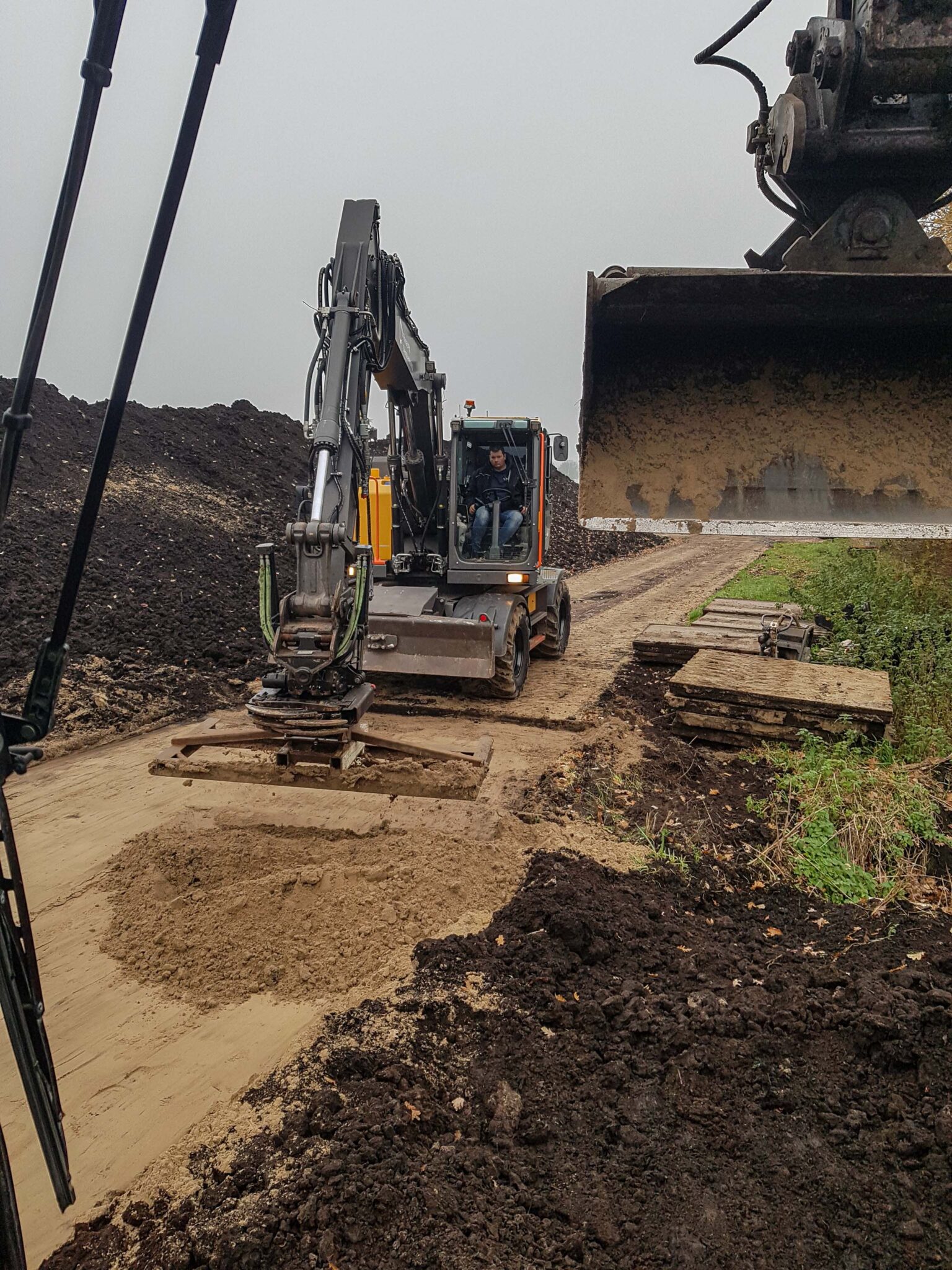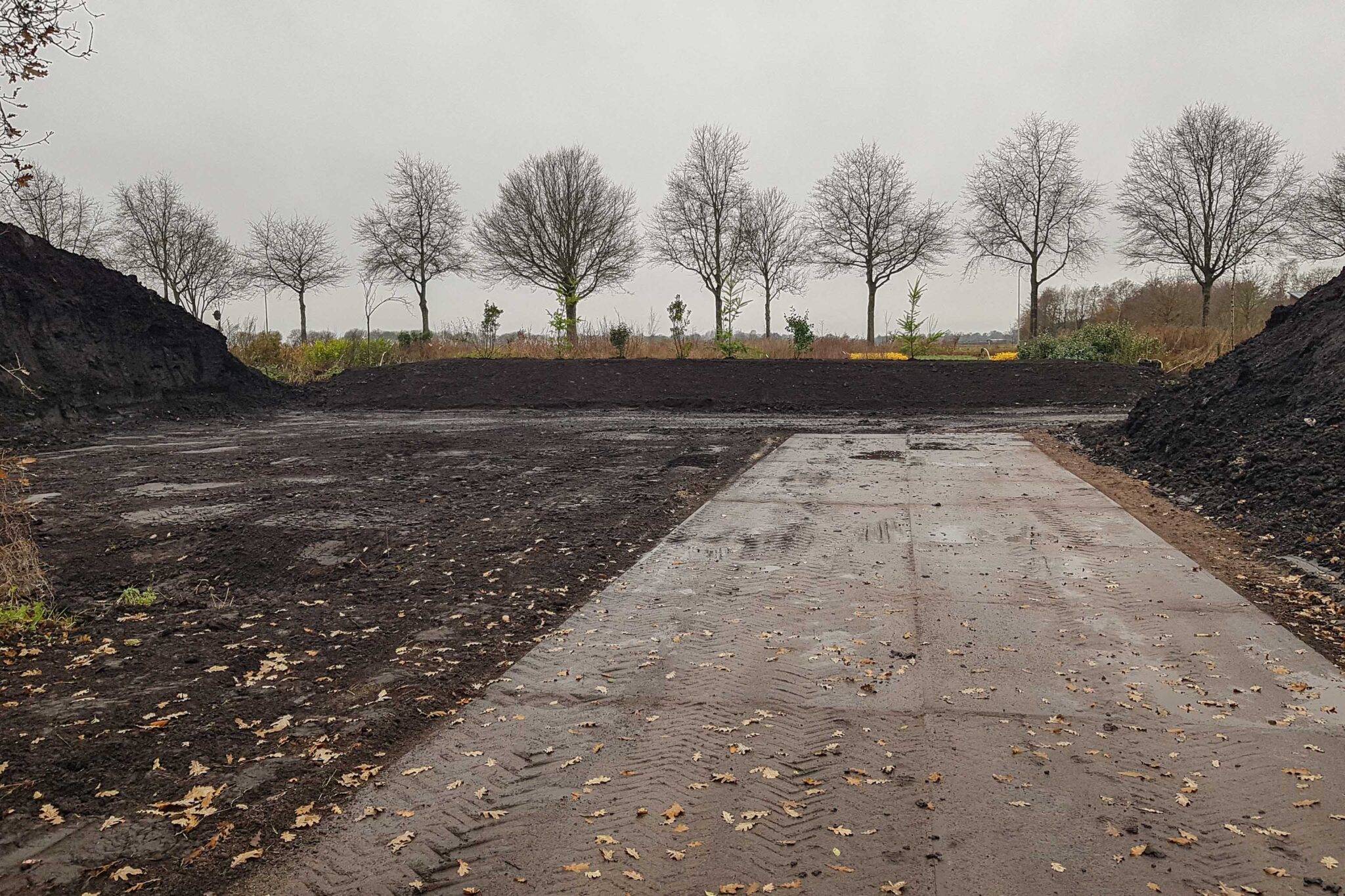 Bij Boomkwekerij Hanekamp hebben we het stelconplatenpad, voor het laden van de uitgerijpte compost, met 12 meter verlengd. We hebben gebruik gemaakt van gebruikte stelconplaten. Een groot deel van de vrijgekomen grond is afgewerkt tot grondwal, deze zal vol met plantsoen gezet worden.