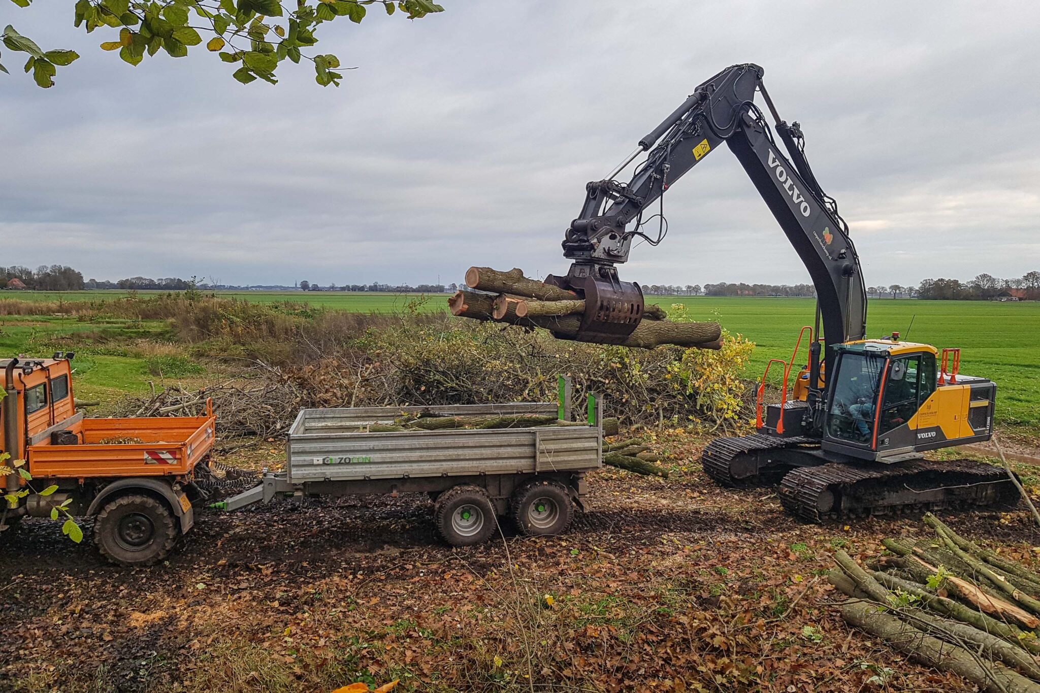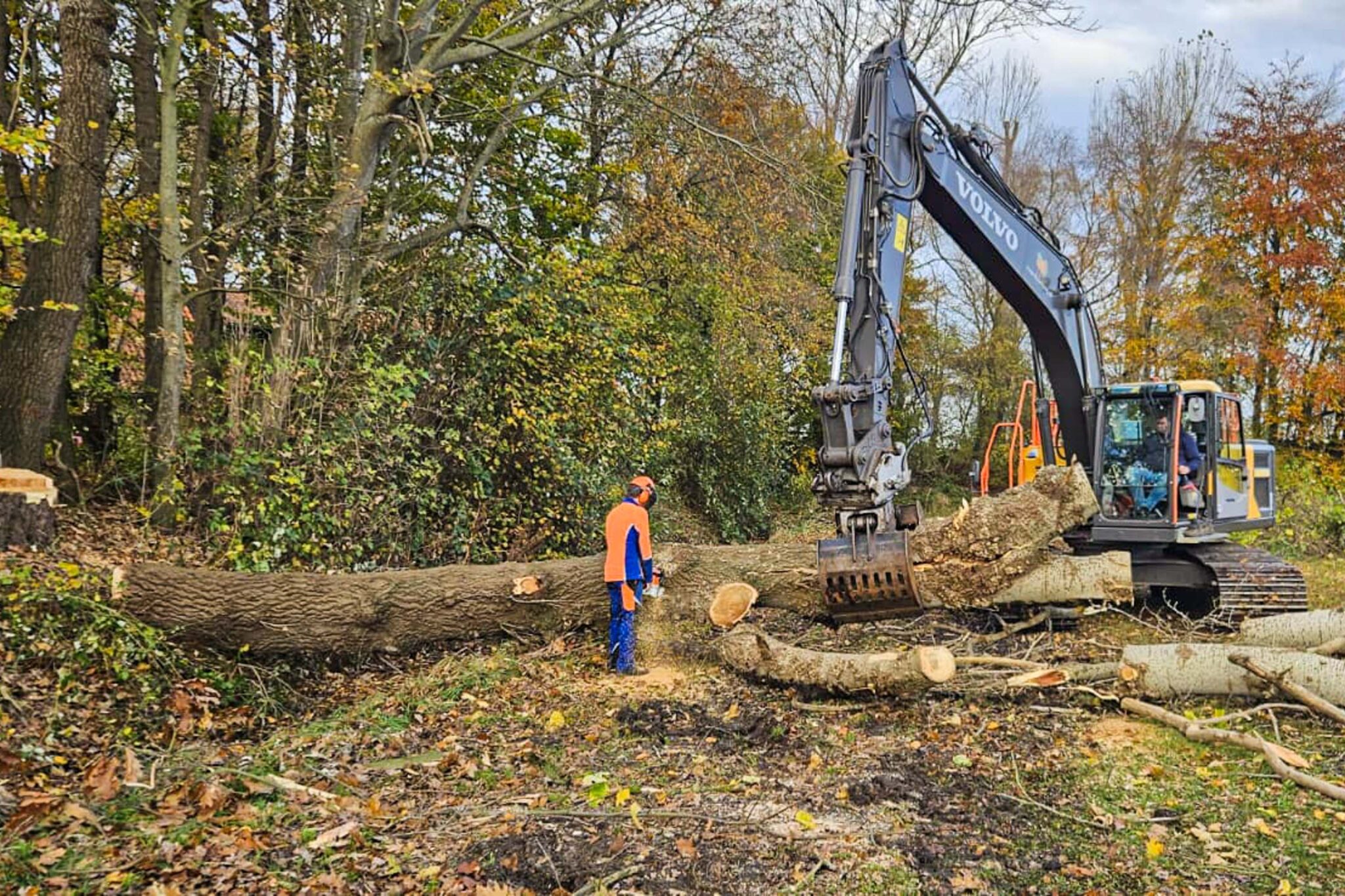 We hebben diverse bomen gekapt om een vijver later dit seizoen te kunnen uitbreiden. Er zullen een groot aantal bomen voor terug geplant worden wanneer de vijver klaar is.